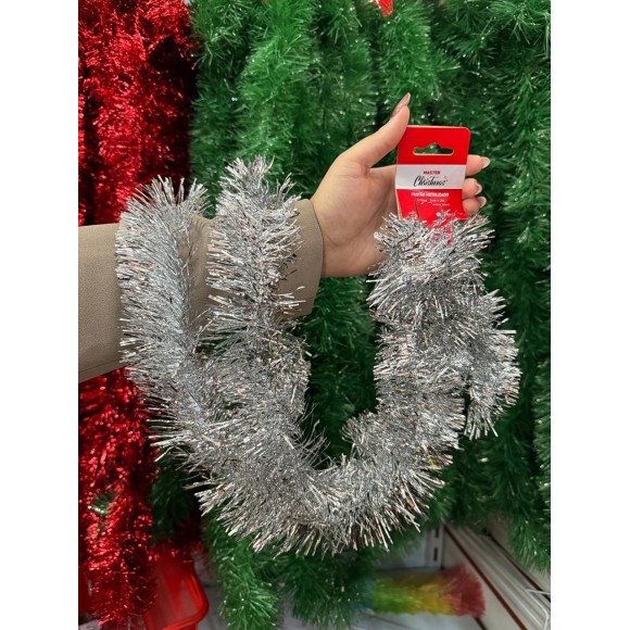 Deixe sua decoração de Natal ainda mais elegante e reluzente com o Festão Prata Metalizado 3 Fitas.