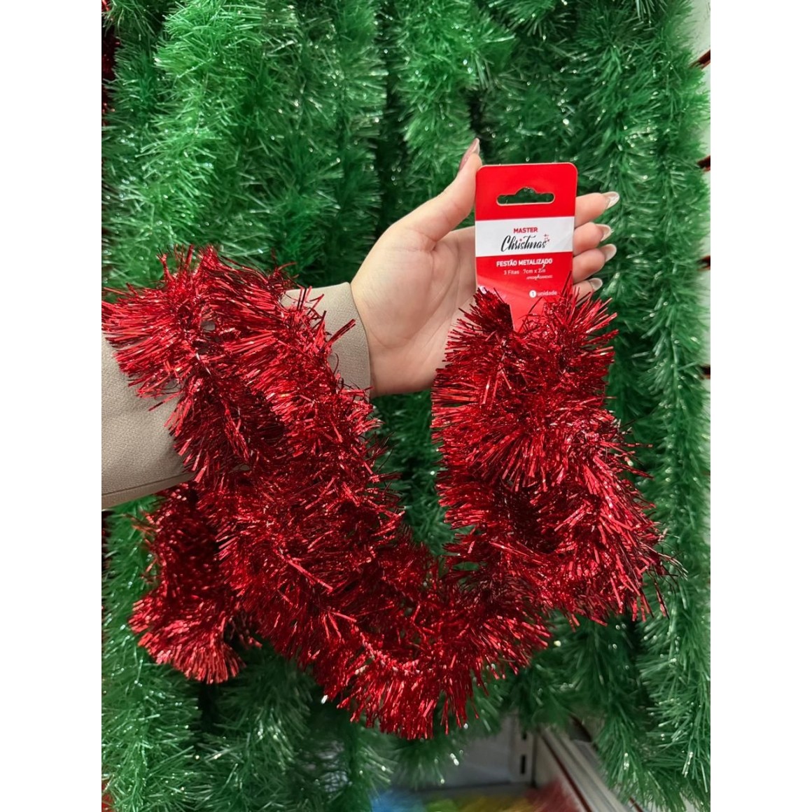 Festão VERMELHO Metalizado 3 Fitas – 7 cm x 2 m