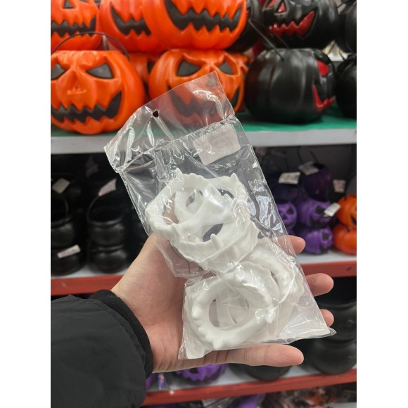 Kit com 12 dentaduras plásticas de vampiro, perfeitas para fantasias, festas de Halloween, lembrancinhas e brincadeiras infantis. As peças são confeccionadas em plástico flexível e atóxico, adaptando-se facilmente à boca para uso decorativo. Ideais para completar fantasias de vampiro, zumbi, monstro e outros personagens assustadores.