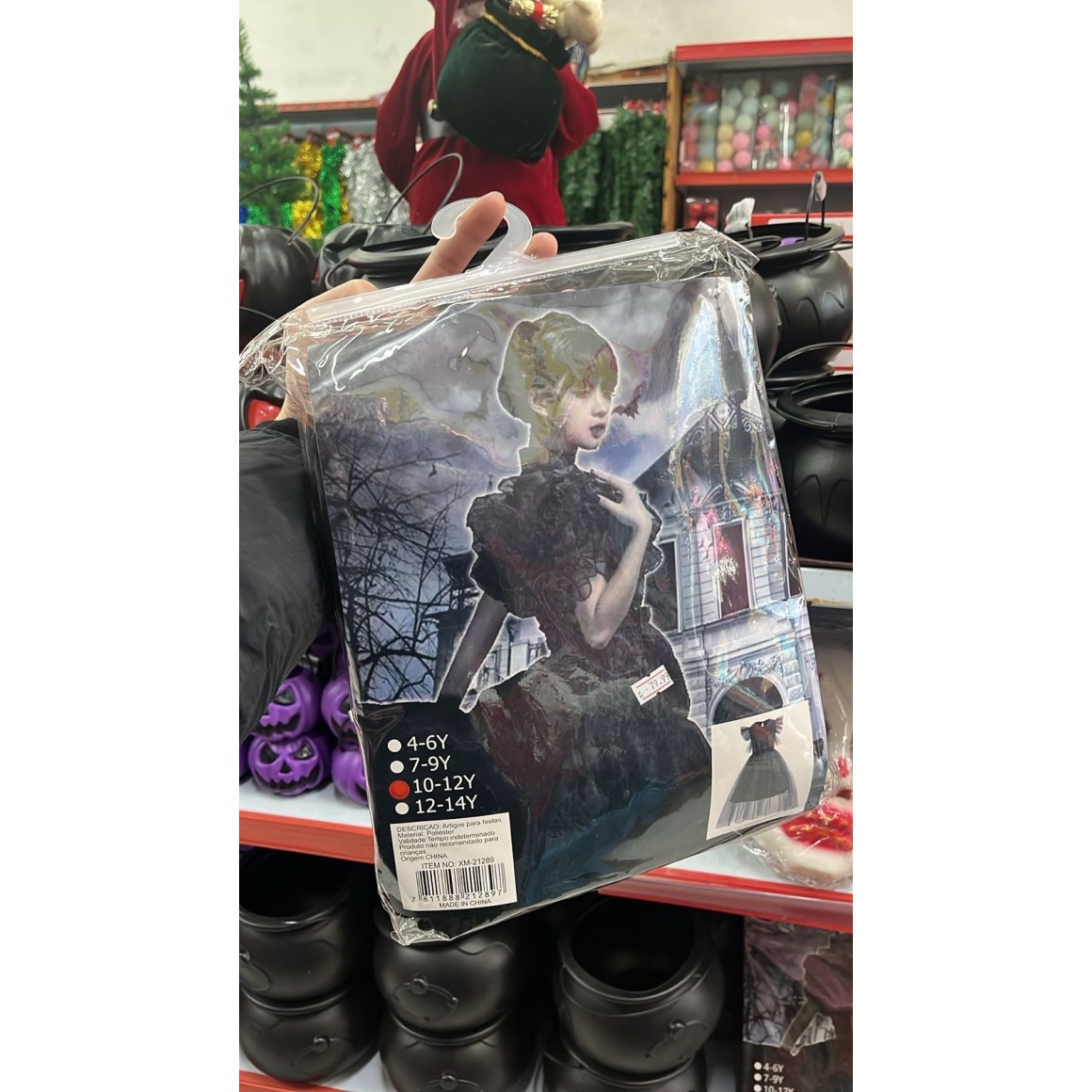 Fantasia Infantil Vampira Sombria Halloween – Tamanho 12 a 14 Anos