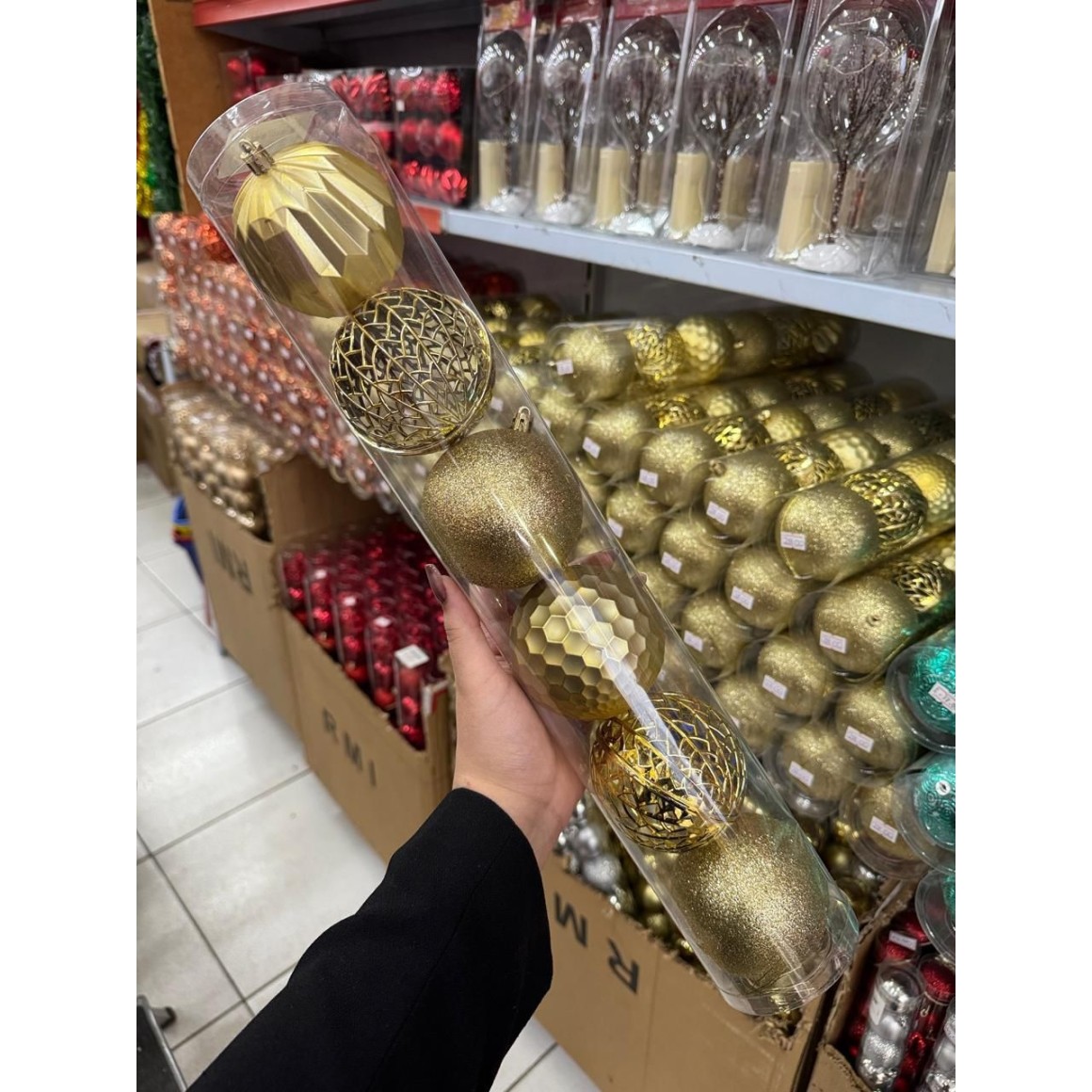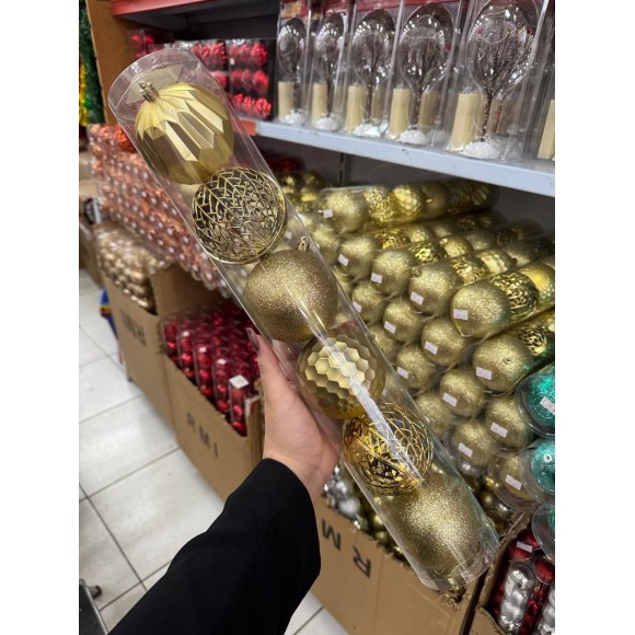 Kit com 6 Bolas de Natal Douradas 8cm – Acabamento Luxo Sortido (Fosco, Glitter e Vazado) ???