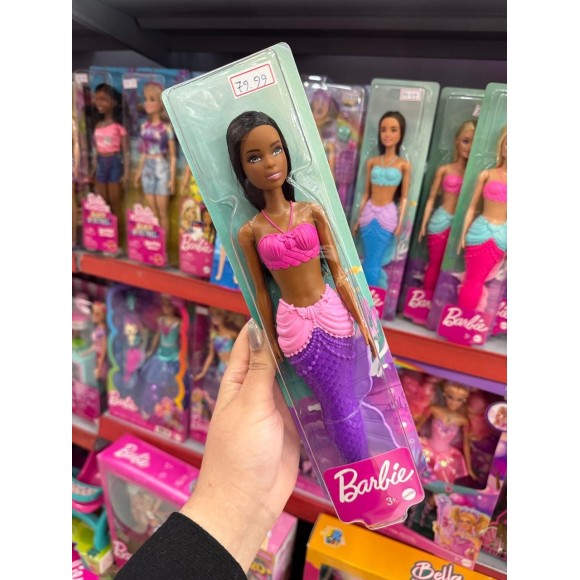 Mergulhe em um mundo de magia com a Boneca Barbie Sereia Roxa e Rosa da Mattel, uma das versões mais encantadoras da coleção Dreamtopia! Com cauda escamosa em tons de roxo e rosa, top em formato de conchas e longos cabelos escuros, essa boneca traz o charme das sereias com o toque moderno e elegante da Barbie.