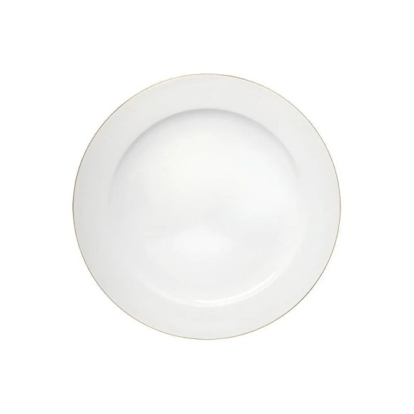 O Prato Raso Royal Hauskraft traz sofisticação e elegância para a sua mesa posta. Com acabamento em porcelana branca e uma delicada borda dourada, é ideal para jantares especiais, eventos e ocasiões formais, garantindo um toque refinado à decoração.