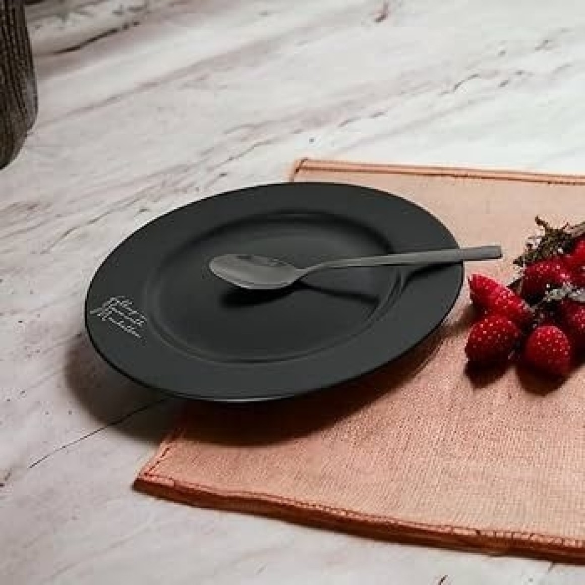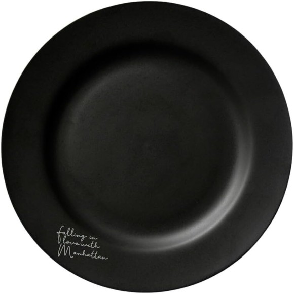 Prato de vidro com acabamento preto fosco e inscrição discreta “Falling in love with Manhattan”. Tamanho ideal para sobremesas, frutas e lanches, com visual moderno que compõe mesas contemporâneas.