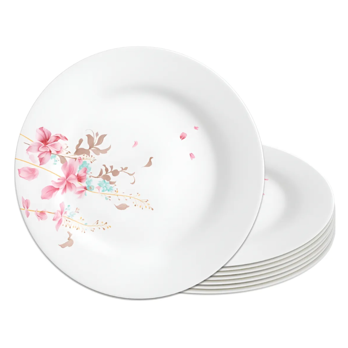 Prato Raso de Vidro Branco Flowers Bord 25,5cm – Em Casa Tem