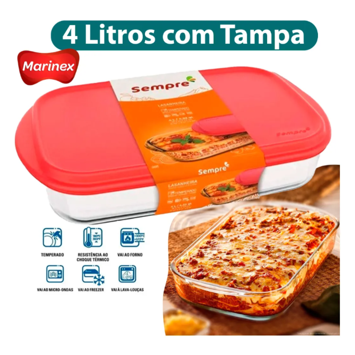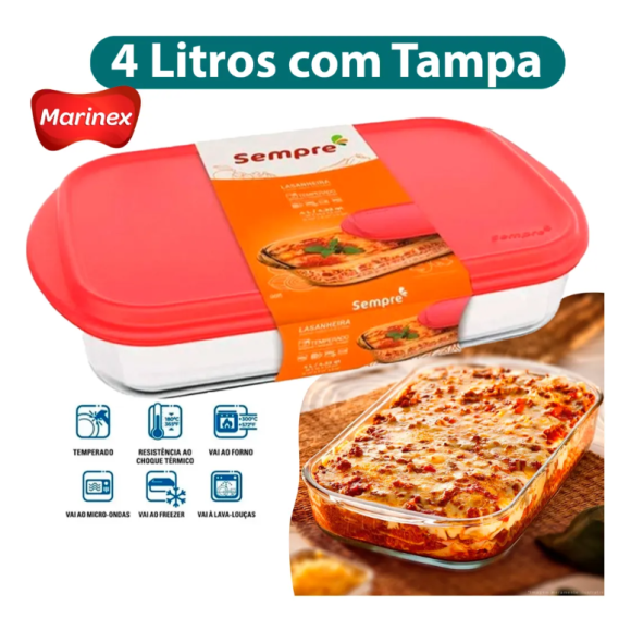 Assadeira Com Tampa 4L Lasanheira Grande Sempre Nadir Transparente