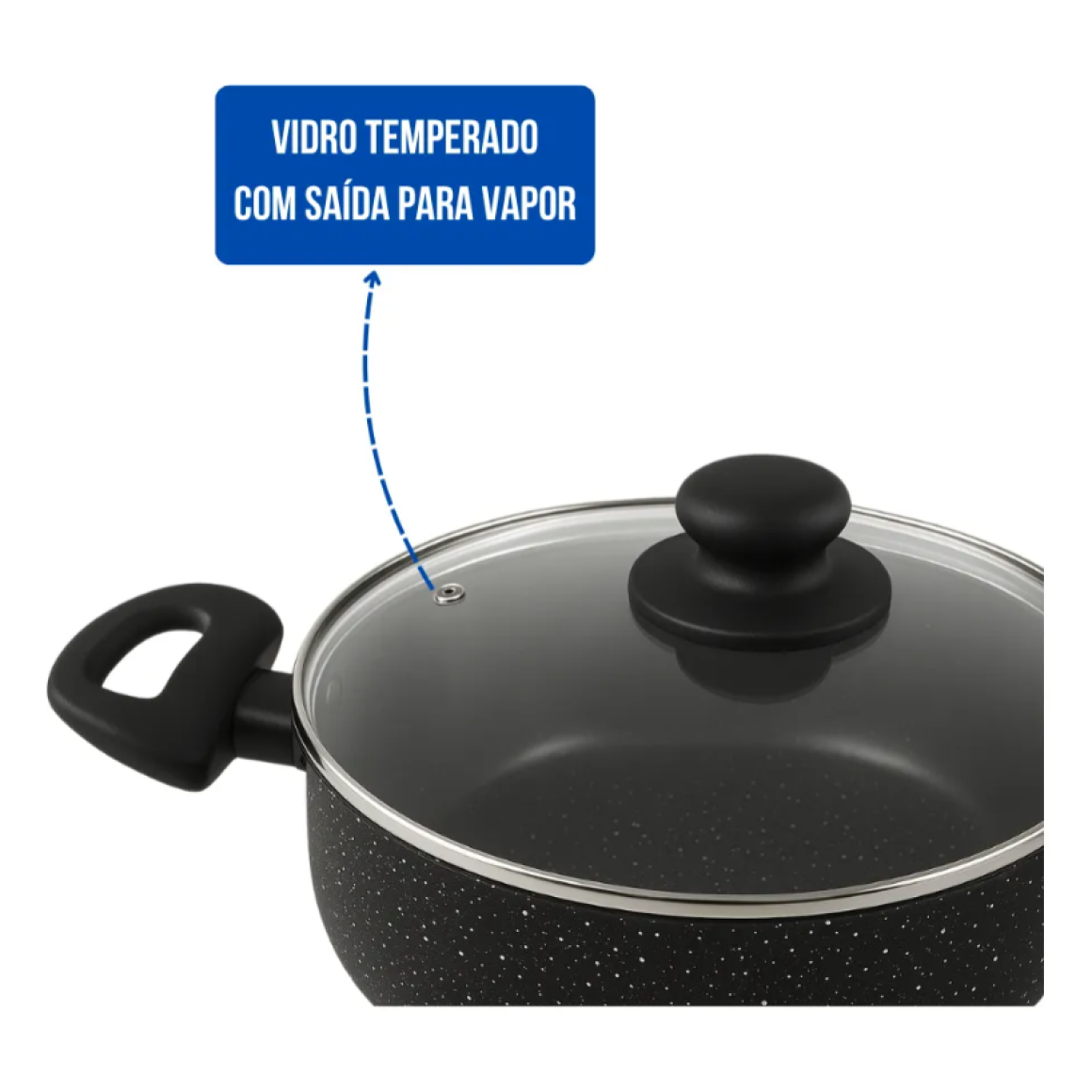 O Jogo de Panelas Berlim 5 Peças foi desenvolvido para quem busca qualidade, elegância e praticidade no preparo das refeições. Compatível com fogões a gás, elétricos e por indução, o conjunto é produzido em alumínio com revestimento cerâmico antiaderente, que distribui o calor de forma uniforme e evita que os alimentos grudem, facilitando o uso e a limpeza.
