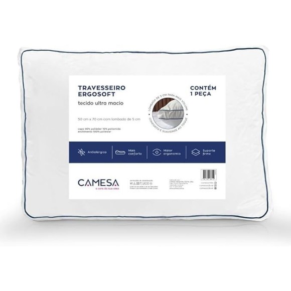 O Travesseiro Camesa Ergosoft Hotel foi desenvolvido para oferecer conforto e suporte ideais para um sono de qualidade. Com design ergonômico e lombada de 5 cm que proporciona maior volume e sustentação, ele combina o toque macio do tecido polinylon com enchimento antialérgico, garantindo noites de descanso revigorantes dignas de hotel.