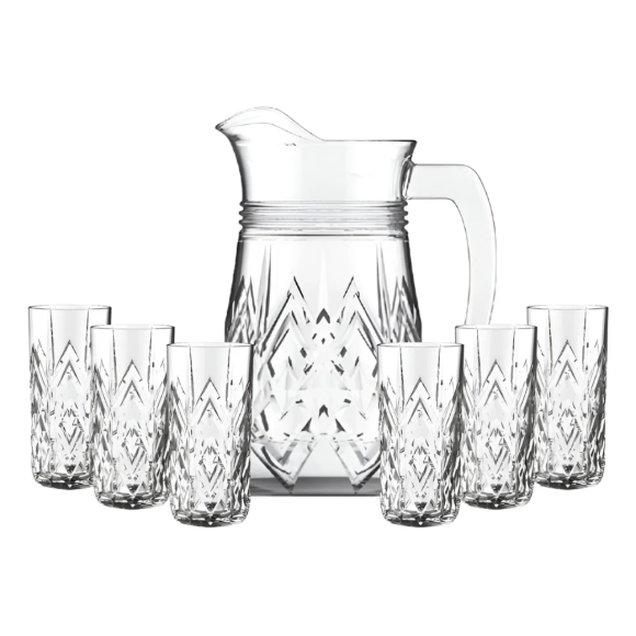 Jogo de Jarra com 6 Copos de Vidro – Linha Samantha (Transparente)