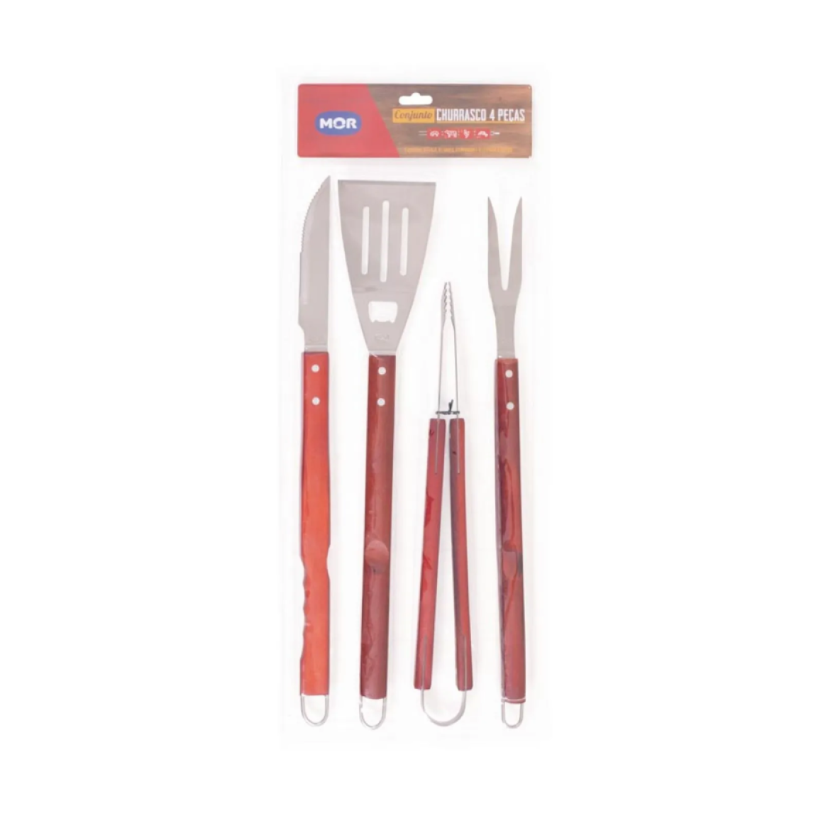 Conjunto para Churrasco 4 Peças com Cabos Compridos – MOR