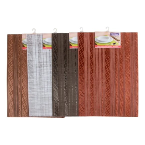 Dê mais charme e praticidade às suas refeições com o Jogo Americano Sydney Fratelli. Fabricadas em PVC de alta qualidade, garantindo resistência, durabilidade e fácil limpeza.