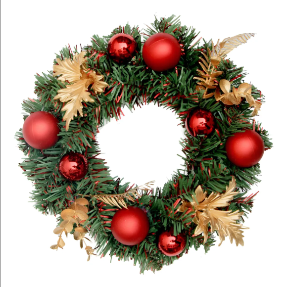 Guirlanda de Natal com Folhas e Bolas – 30 cm (53986)