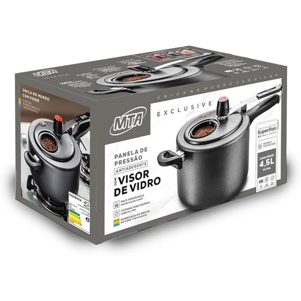 O visor de vidro temperado na tampa é o grande diferencial: permite visualizar o cozimento sem a necessidade de abrir a panela, garantindo mais segurança e controle das receitas.