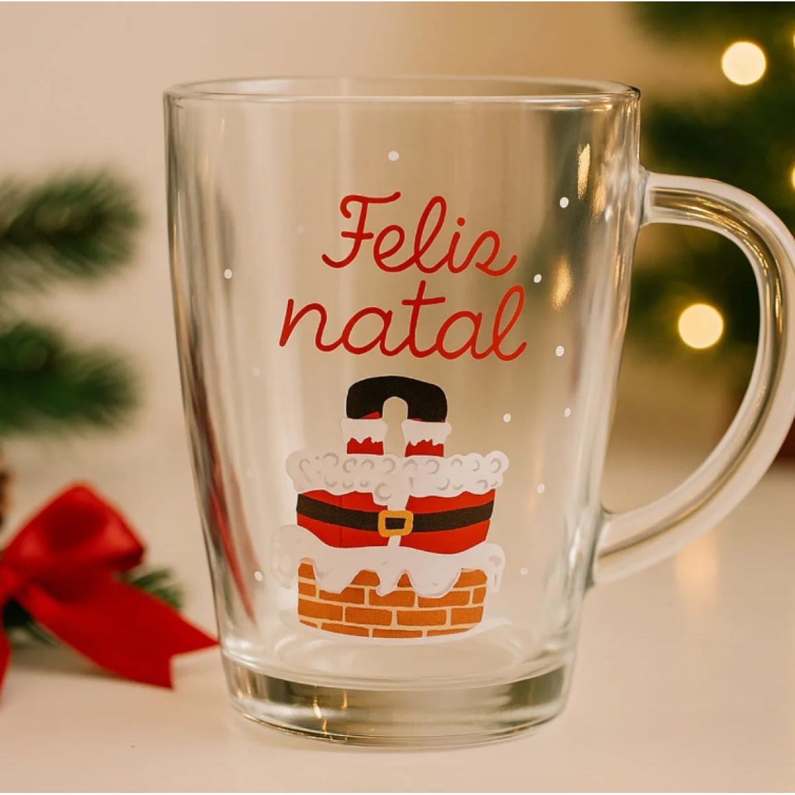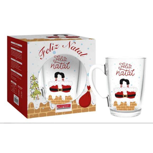 Caneca de Vidro Papai Noel 320ml – Hauskraft