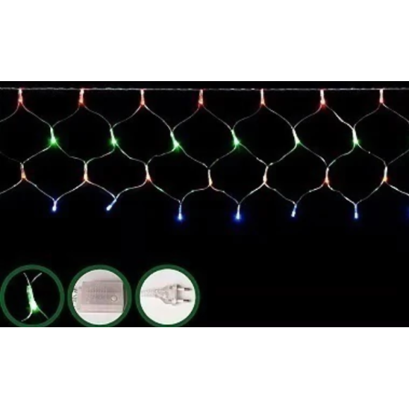 Rede de luzes LED colorida, ideal para decoração de fachadas, varandas, janelas e ambientes internos. O modelo conta com 96 lâmpadas de alto brilho e baixo consumo de energia.