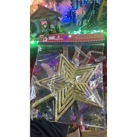 Enfeite Natalino Ponteira Estrela Dourado com Glitter